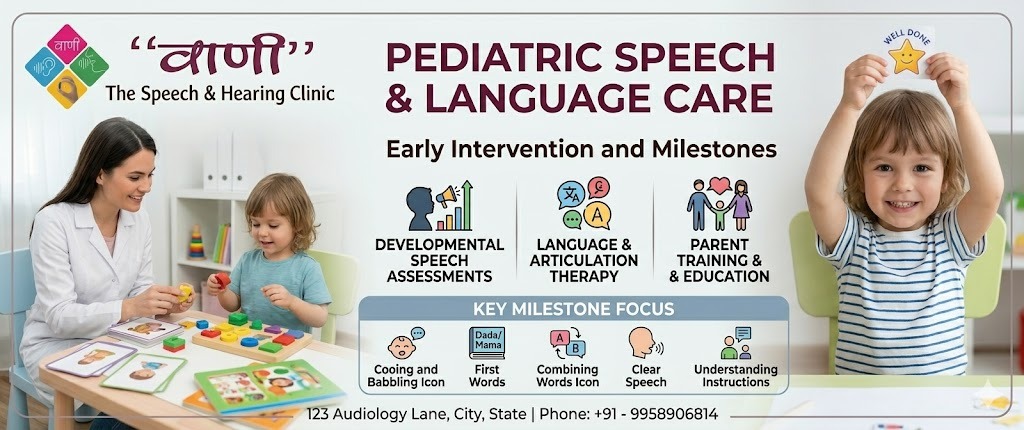 “Vani” – The Speech & Hearing Clinic is dedicated to transforming lives by improving communication and hearing abilities for people of all age groups. We offer comprehensive services including detailed assessment, accurate diagnosis, and customized therapy for speech delays, stammering, misarticulation, voice disorders, and hearing impairments. Our experienced team of speech-language pathologists and audiologists use advanced technology and scientifically proven methods to ensure effective and lasting results.